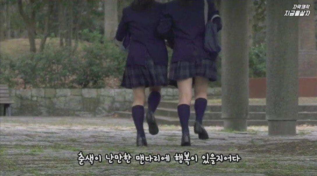 그러던 중 그는 우연히 시선을 돌리다 여고생들의 치마 속과 허벅지를 보게된다.