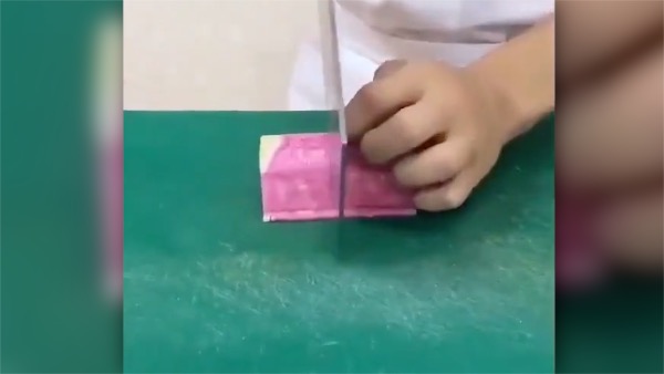 칼을 이용해 재료를 빠른 속도로 자르면, 하나의 장식품과 같은 요리가 완성된다.