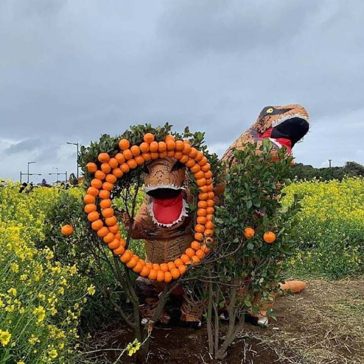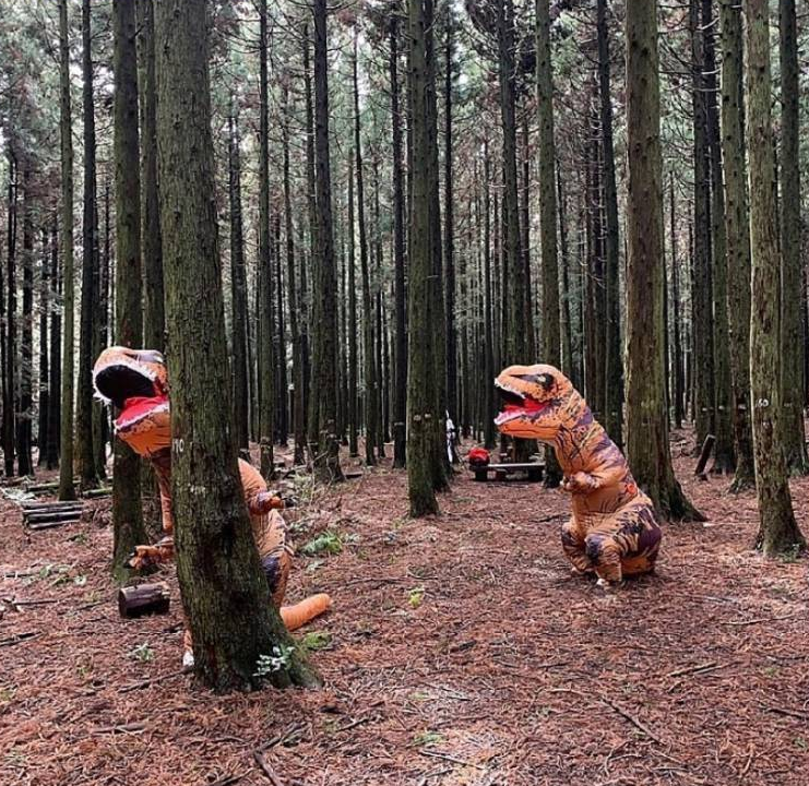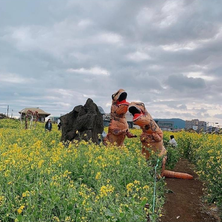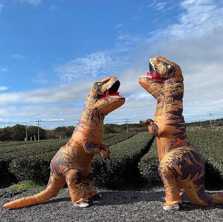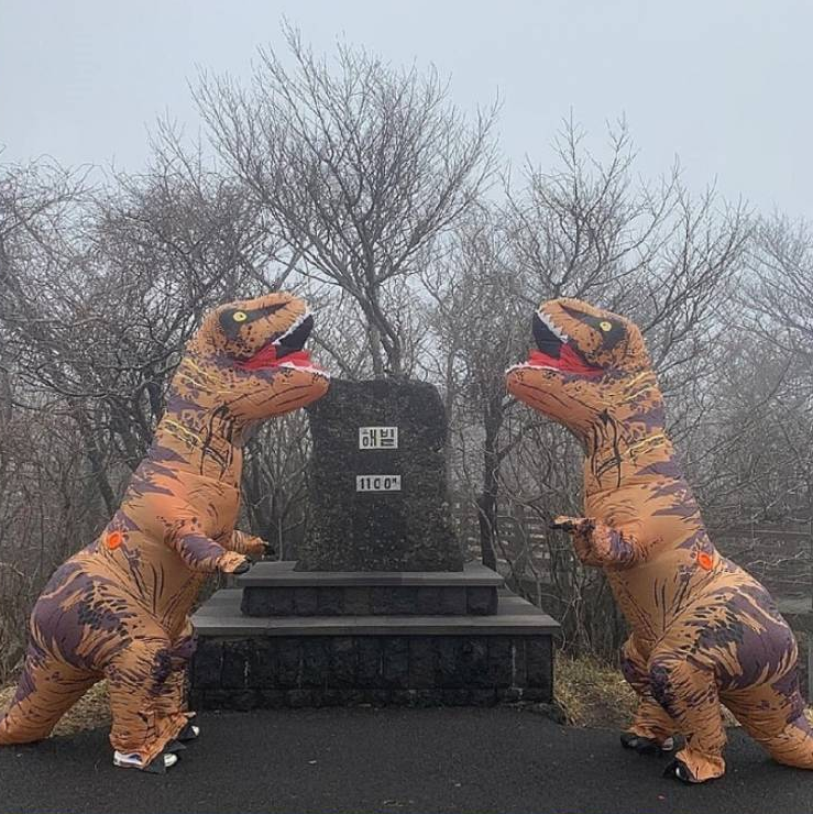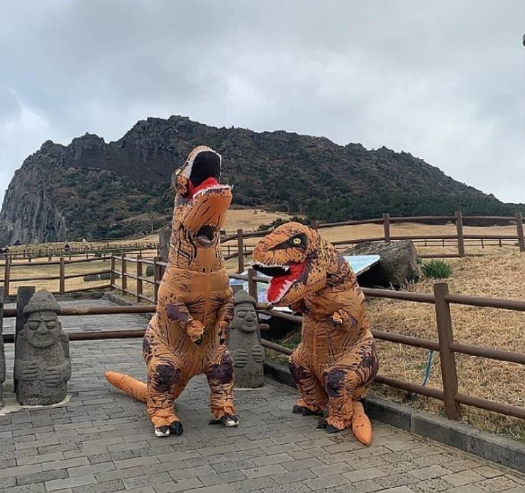 한 커플은 ‘공룡’ 옷을 입고 제주도 곳곳을 누비며 사진을 찍었다.