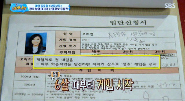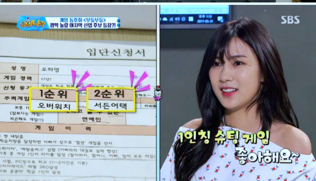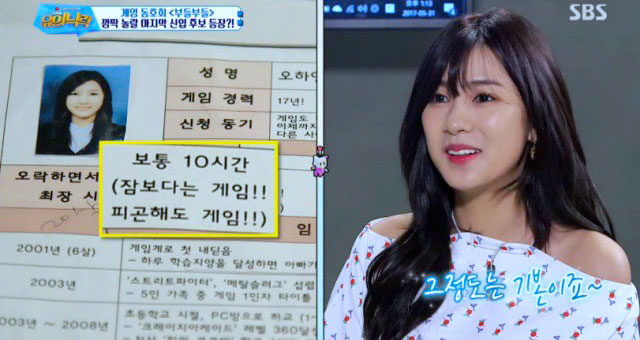 그리고 오하영은 하루 보통 10시간을 게임에 쏟으며, 잠보다는 게임을 선호하며 아무리 피곤해도 게임은 안 빼먹는다고 전했다.