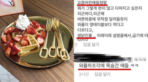 서울의 한 와플 가게에서는 한 조각이 모자라게 나온 와플을 문의하자 원래 그런것이다고 이야기했다.
