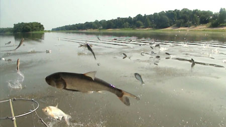 아시아 잉어가 살고 있는 강과 호수를 지나가다가 단체로 점프 공격에 맞으면 치아나 머리가 다칠 수 있다.
