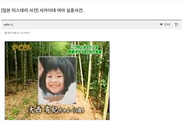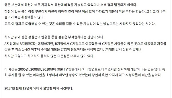 해당 게시글을 올린 작성자 A씨는 “일본 미스테리 사건”라는 제목의 글로 많은 이들의 관심을 끌었다.