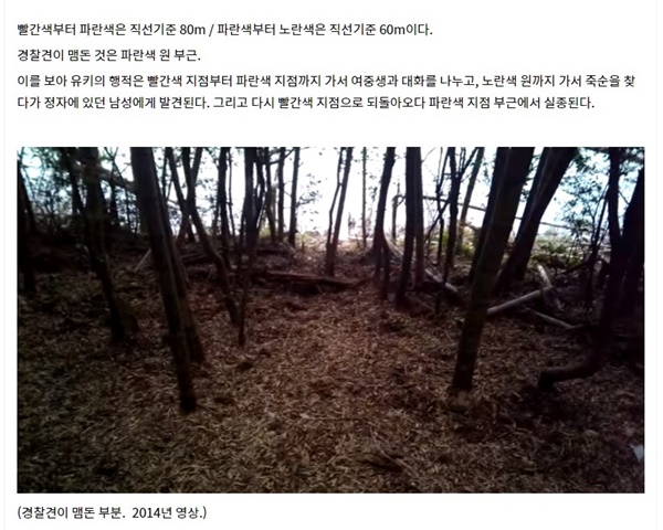 혹시나 산책로에서 발견 된 그녀가 차도 쪽으로 내려가지는 않을까라는 생각을 했었고 차도와 가까운 곳에 위치한 사람들에게도 물었으나 별다른 특이사항은 없었다.