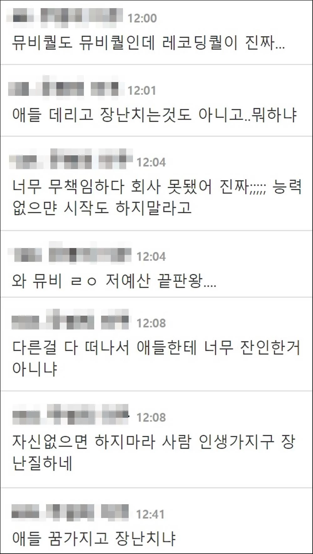 네티즌들은 “애들 데리고 장난치는 것도 아니고..뭐하냐”, “자신 없으면 하지 마라 사람 인생가지구 장난질하네”, “애들 꿈 가지고 장난치냐” 등의 걸그룹에 대한 안쓰러움을 드러냈다.