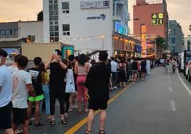 이들은 거리두기를 제대로 지키지 않았으며, 마스크 착용자는 한 명도 없었다.