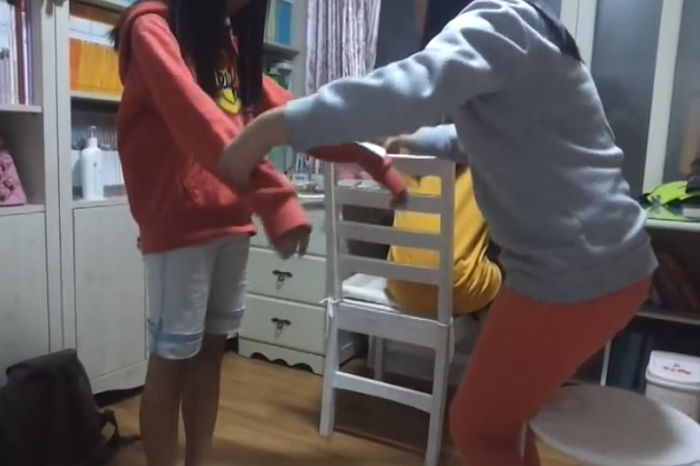 의식을 풀고 싶다면 팔에 힘을 주어 친구의 손이 올라가지 않도록 해야 한다.