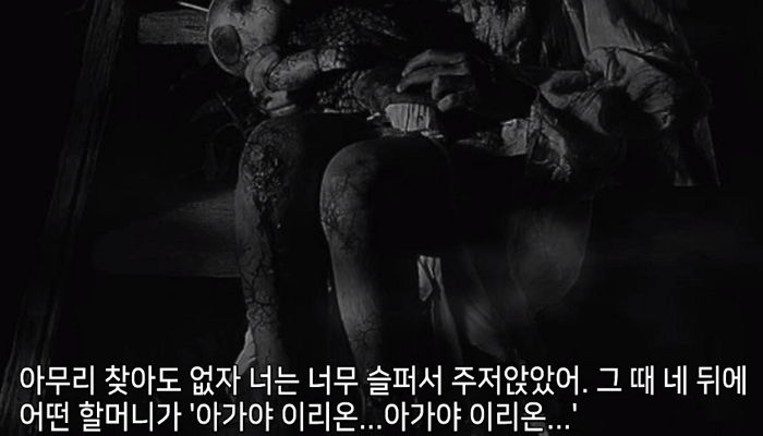 “아무리 찾아도 없자 너는 너무 슬퍼서 주저앉았어. 그런데 네 뒤에서 어떤 할머니가 ‘아가야 이리 온… 이리 온…’.”