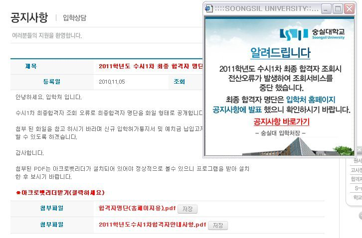 숭실대학교 합격 통보 레전드 사건