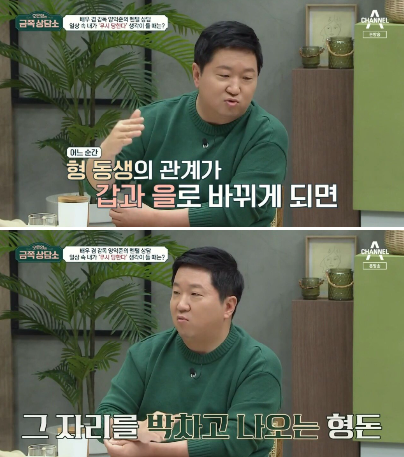 “형 동생의 관계가 갑과 을로 바뀌게 되면 그 자리를 박차고 나오게 됩니다.”라며 설명했다.