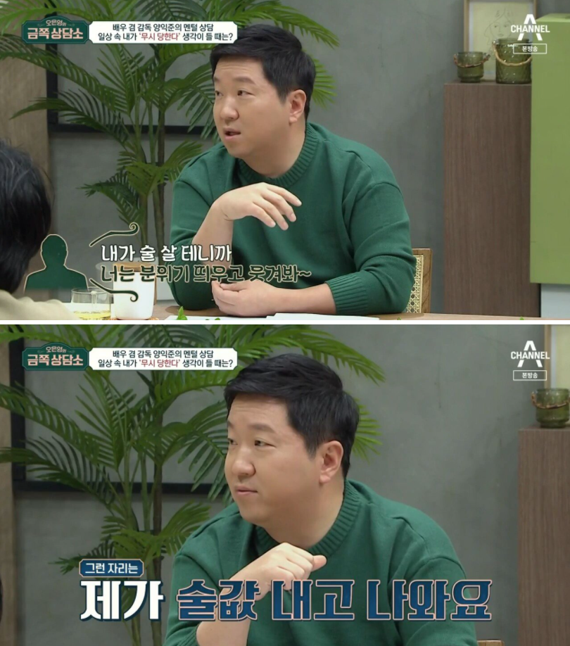 이어서 방송인 정형돈은 “아는 사람이 자신이 술을 살 테니 저보고 분위기를 띄우고 웃겨보라고 했는데 그 술값을 그냥 제가 내고 나왔습니다.”라고 말을 덧붙였다.
