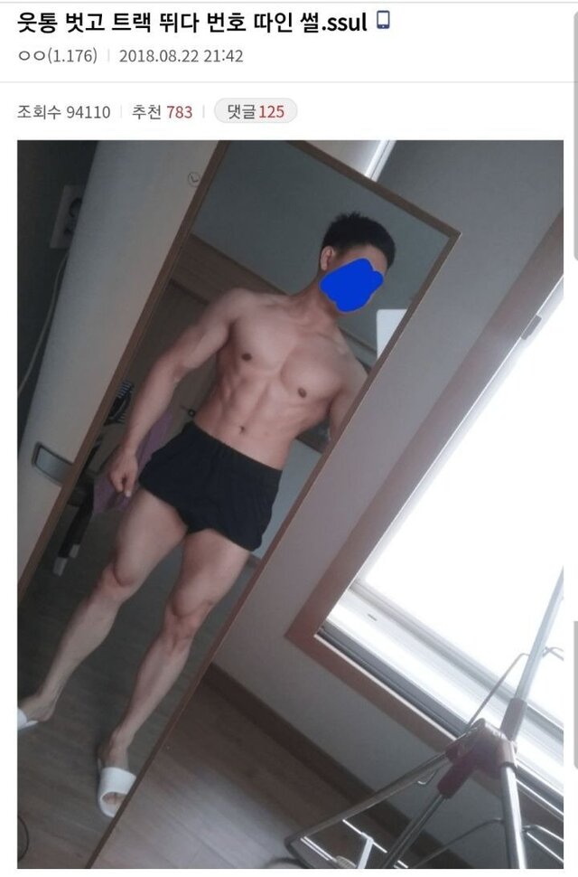 해당 게시글을 올린 작성자 A씨는 “웃통 벗고 트랙 뛰다 번호 따인 썰.ssul”라는 제목의 글로 많은 이들의 관심을 끌었다.