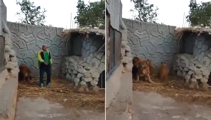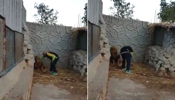 사연에 따르면 남성은 벽 위에서 음식을 주다 발이 미끄러져 동물원 사자 우리에 떨어졌다.