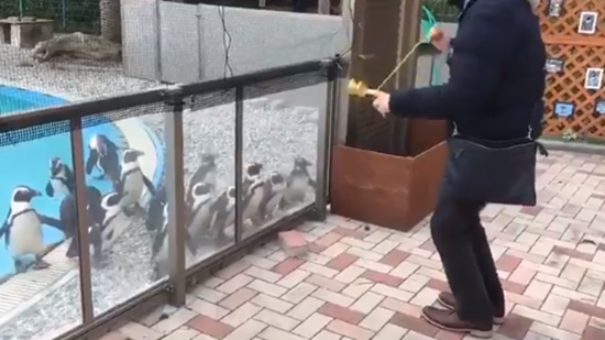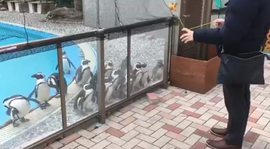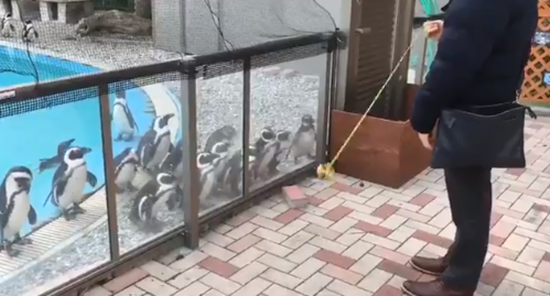 펭귄들이 마치 요요에 홀린 것처럼 그를 쫓아가는 이 동영상은 남성과 펭귄들의 귀여운 케미가 돋보인다.
