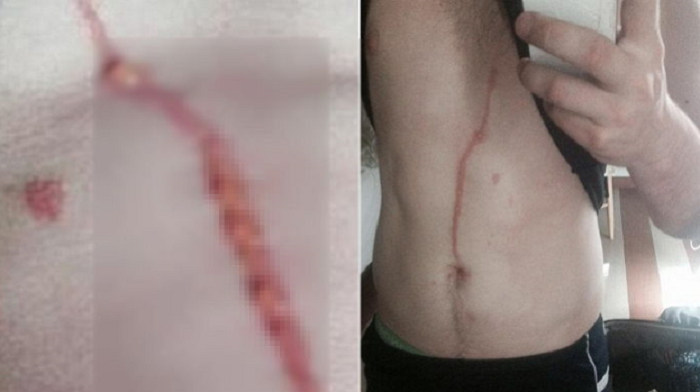 자고 일어나자 배에 칼자국이 생긴 남성이 병원 진료를 받고 충격에 빠졌다.