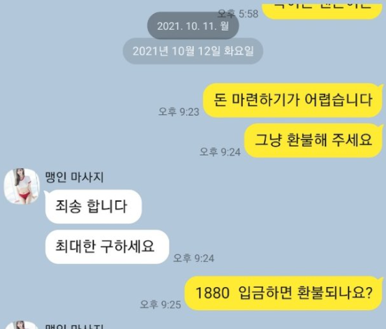 출장 마사지사를 불렀다가, 3220만원을 뜯긴 한 남성의 사연