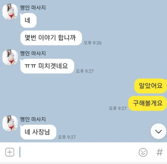 A씨가 15만원을 보내자 이번에는 ‘안마사 안전보증금’ 명목으로 50만원을 추가적으로 더 요구했다.