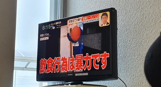 이때에도 ‘음식이 아니라 폭력입니다”라는 문구가 쓰인 팻말을 들고 영업을 방해했다.