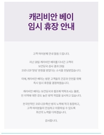 현재 에버랜드 측은 홈페이지를 통해 “지난 18일 캐리비안베이를 다녀간 고객이 보건당국 검사 결과 19일 코로나 양성 판정을 받았다는 소식을 전달받았다. 방문 고객들의 건강과 안전을 위해 즉시 임시 휴장을 결정했다”라고 밝혔다.