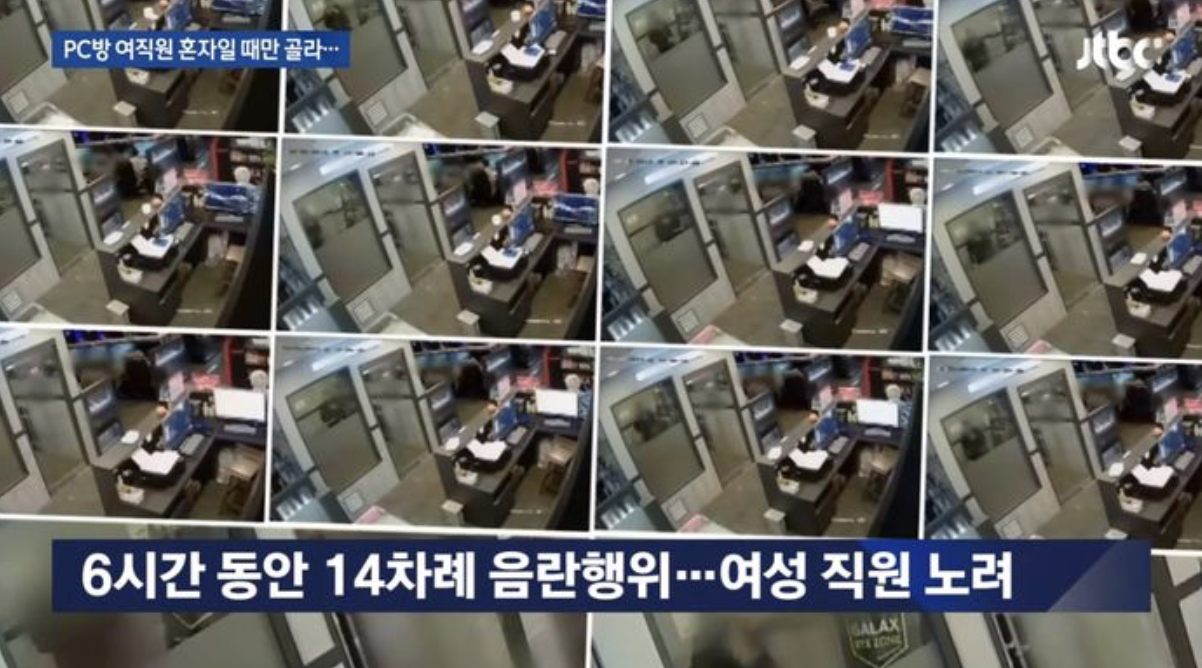 지난 11월 4일 JTBC 뉴스룸은 경기 의왕시에 거주하는 남성이 PC방에서 무려 6시간동안 음란행위를 14번 하다가 경찰에 적발된 내용을 보도했다.