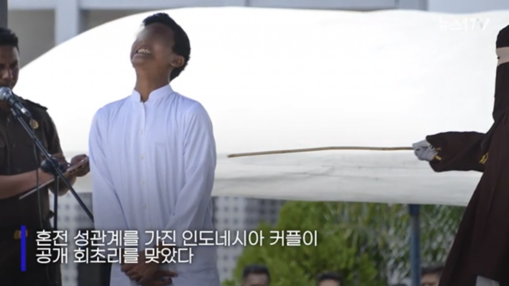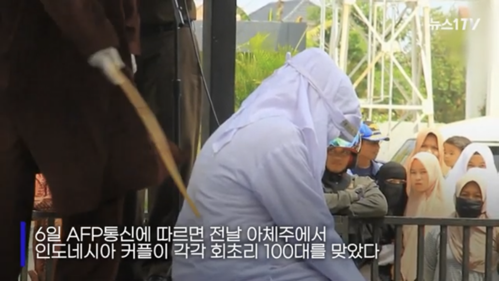 지난해에는 아체주에서 18세 남녀가 공공장소에서 포옹을 했다는 이유로 98일간 교도소에 수감된 후 각각 17대씩 회초리를 맞기도 했다.