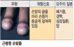 곤봉형 손발톱 유형의 사람은 폐기종, 결핵. 심장질환, 암에 질병에 노출 되어 있을 수 있다.