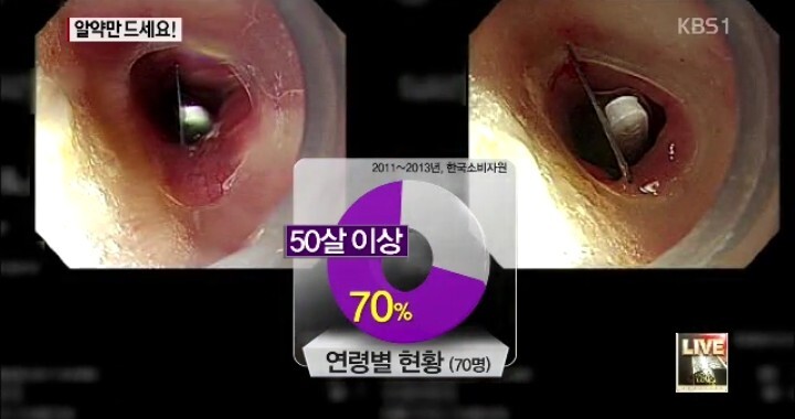 이와 함께 캡처된 뉴스 화면에는 실제 알약을 포장 채로 먹은 사례가 50살 이상이 70%에 달하는 것으로 조사됐다.