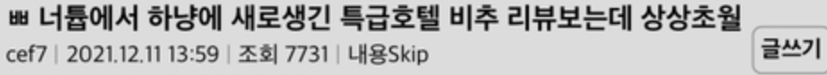 해당 게시글을 올린 작성자 A씨는 “유튜브에서 하냥에 새로생긴 특급호텔 비추 리뷰보는데 상상초월”이라는 제목의 글로 많은 이들의 관심을 끌었다.
