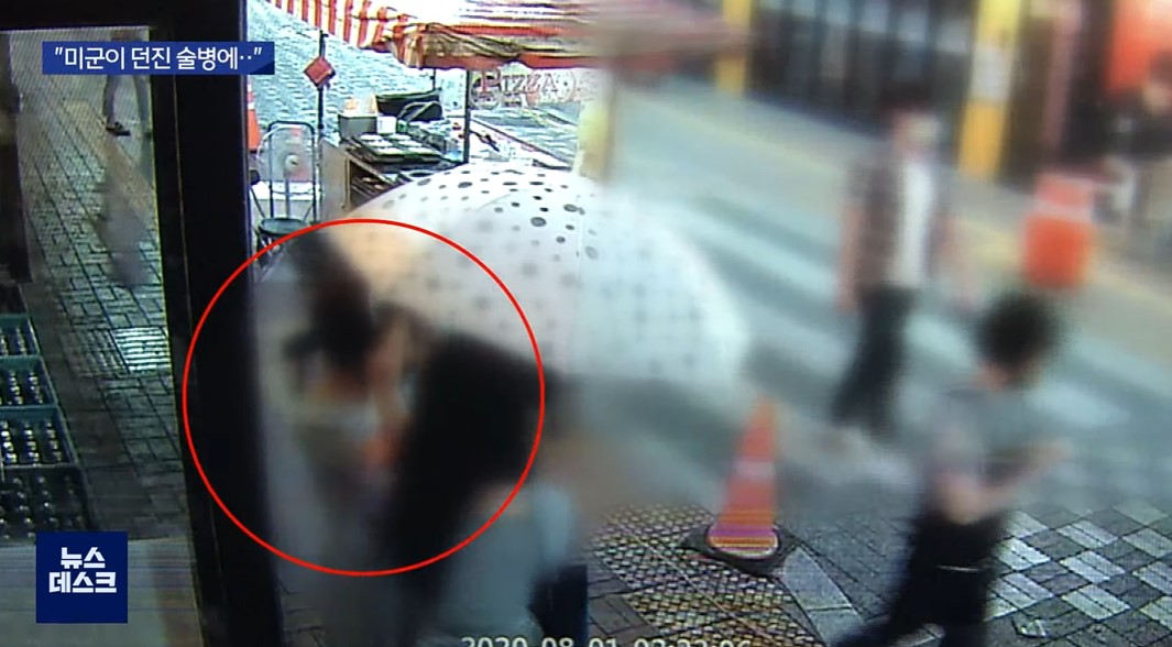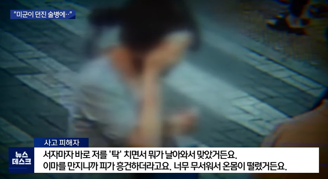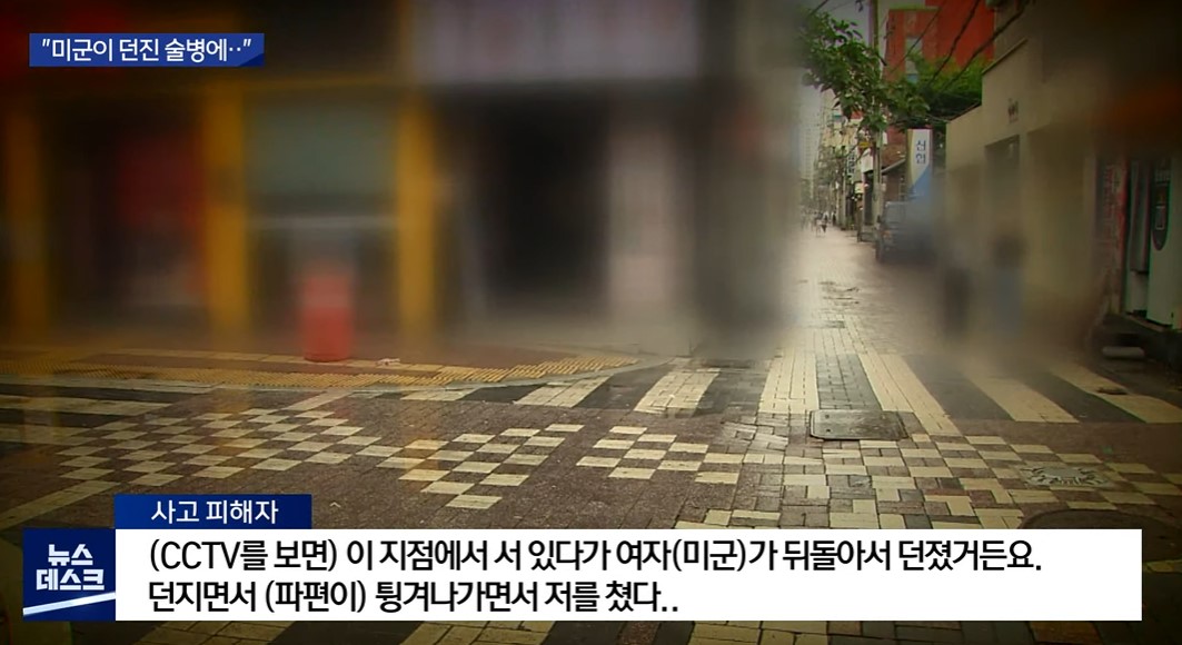 그리고 술병을 던진 이가 미군으로 밝혀졌다.