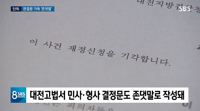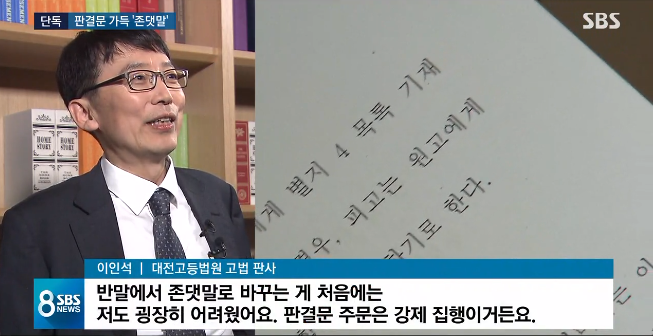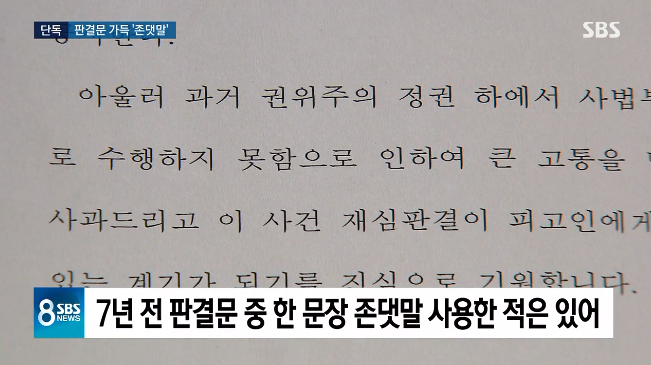 지난 6일 SBS 단독 보도에 따르면, 처음으로 존댓말로 작성한 판결문이 등장했다.