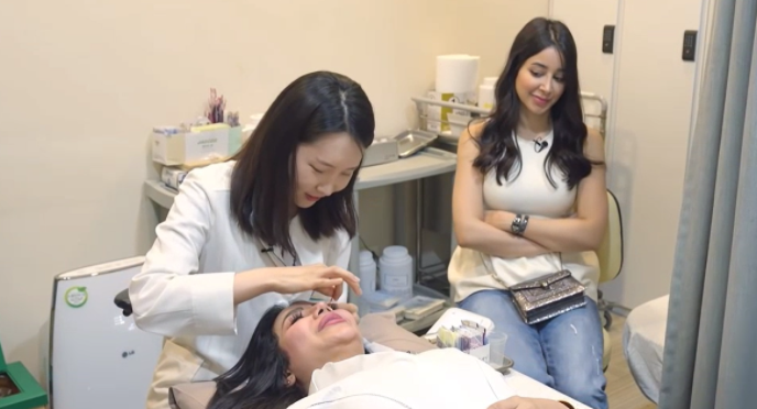 그녀는 한방 병원에 방문해 ‘미용침’이란 시술을 받았으며, 안면근육을 자극하는 미용침은 얼굴을 동안으로 만들어줬다.