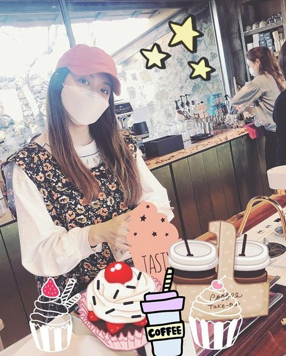 유진은 직접 찍은 박한별의 모습과 카페 내부를 공개했다. 이 사진에서 박한별은 마스크와 모자를 착용한 채 카메라를 응시하고 있었다.