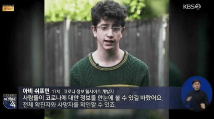 KBS는 미국 워싱턴 주의 한 고등학교에 재학 중인 ‘아비 쉬프먼(17)’의 사연으로 쉬프먼이 지난해 연말 중국 우한의 중심으로 코로나19가 퍼져나가자 이에 대한 정보를 담은 사이트 ncov2019.live를 만든 사연을 보도했다.