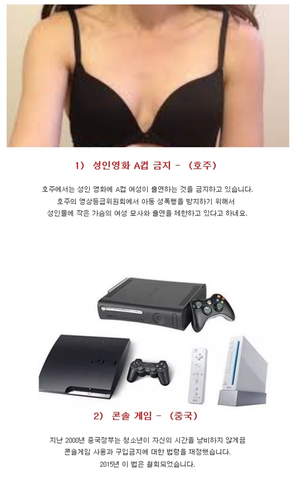 호주는 성인영화에서 A컵의 여성이 등장하는 것을 막는 법안이 있다고 한다. 아동 성폭행을 방지하는 목적이라고 전했다.