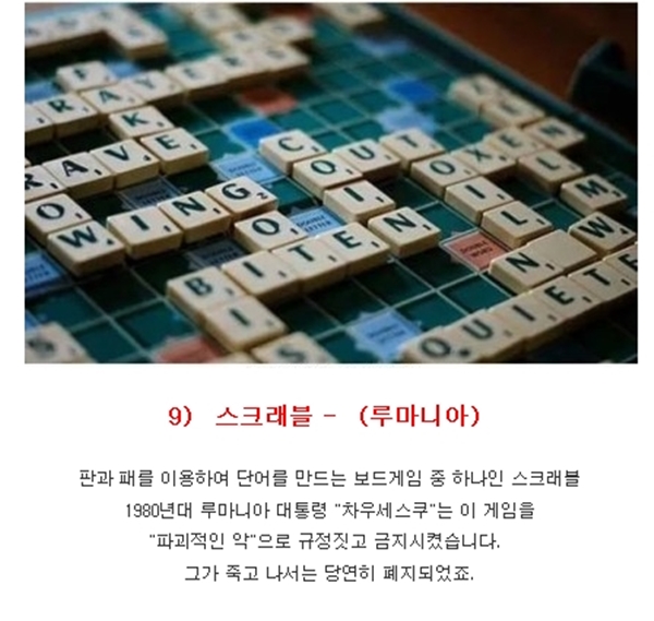 루마니아에서는 스크래블이라는 게임을 금지 시켰다.