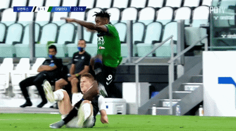 바로 전반 22분경 아탈란타의 두반 사파타에 의해 유벤투스의 마타이스 데 리흐트 선수의 급소가 밟혀버리고 만 것이다.