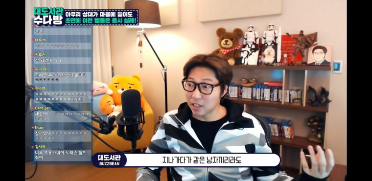 이어 대도서관은 일하는 사람한테 “너 내가 마음에 드니까 나랑 한번 만나볼래?”라고 말하는데 말이 되냐며 “지나가다가 같은 남자끼리도 어? 저 사람 마음에 드네 행동이, 저기요~ 저랑 술 한잔 합시다”라고 해도 “‘이사람 뭐야?’ 이럴텐데 잘 까였지 그러면 안돼요”라고 말해 공감을 느끼게 해주었다.