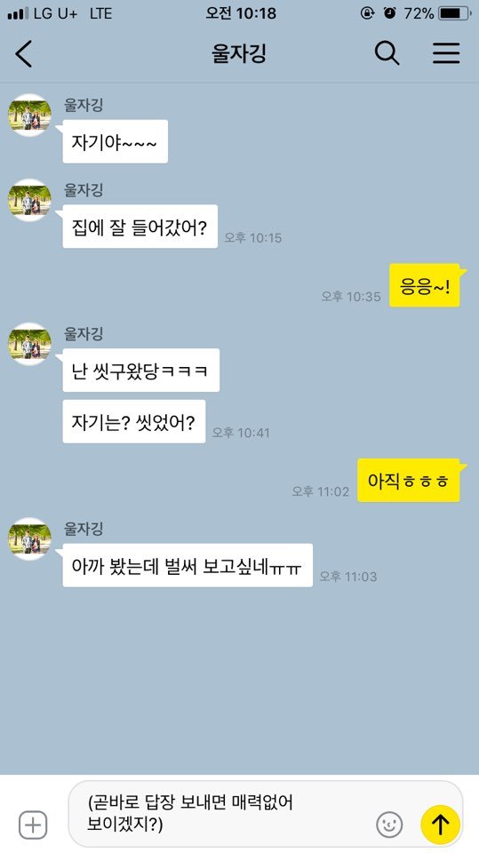 바빠서 연인과 카톡하기가 힘들어 답장까지 시간이 꽤 걸릴 것 같다면,