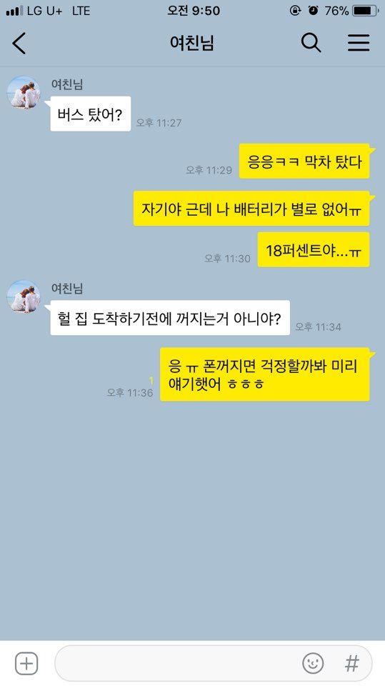 물론 연인은 배터리가 다 됐을 가능성도 생각하겠지만, 미리미리 배터리가 얼마 남지 않았다는 사실을 전해 주는 것이 좋다.