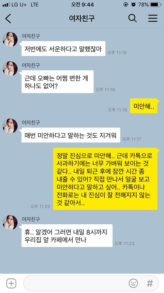 자신의 무거운 감정을 전달해야 할 일이 있을 때는 카톡보다는 직접 마음을 전하자.