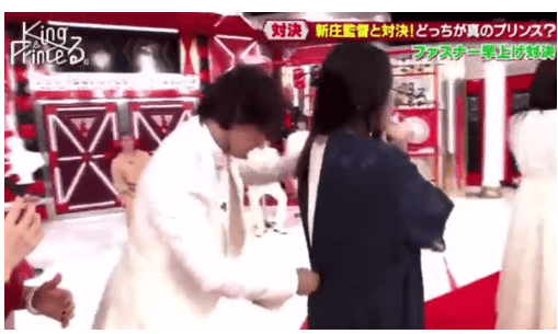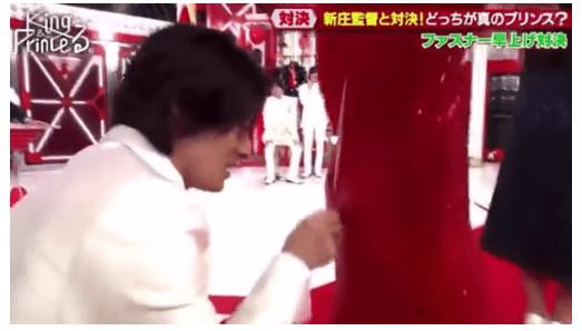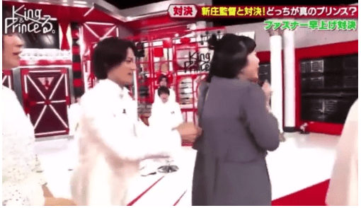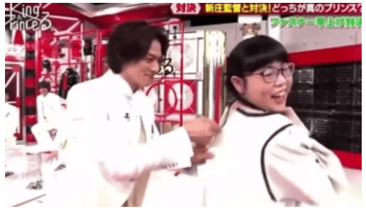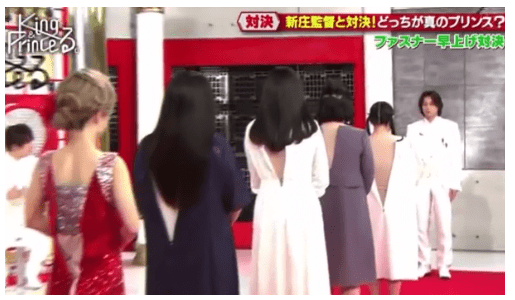 이 예능에 출연한 유명 아이돌 멤버 ‘킹 앤 프린스’의 히라노 쇼는 여성 출연자들의 내려간 원피스 지퍼를 올려주는 코너를 진행했다.