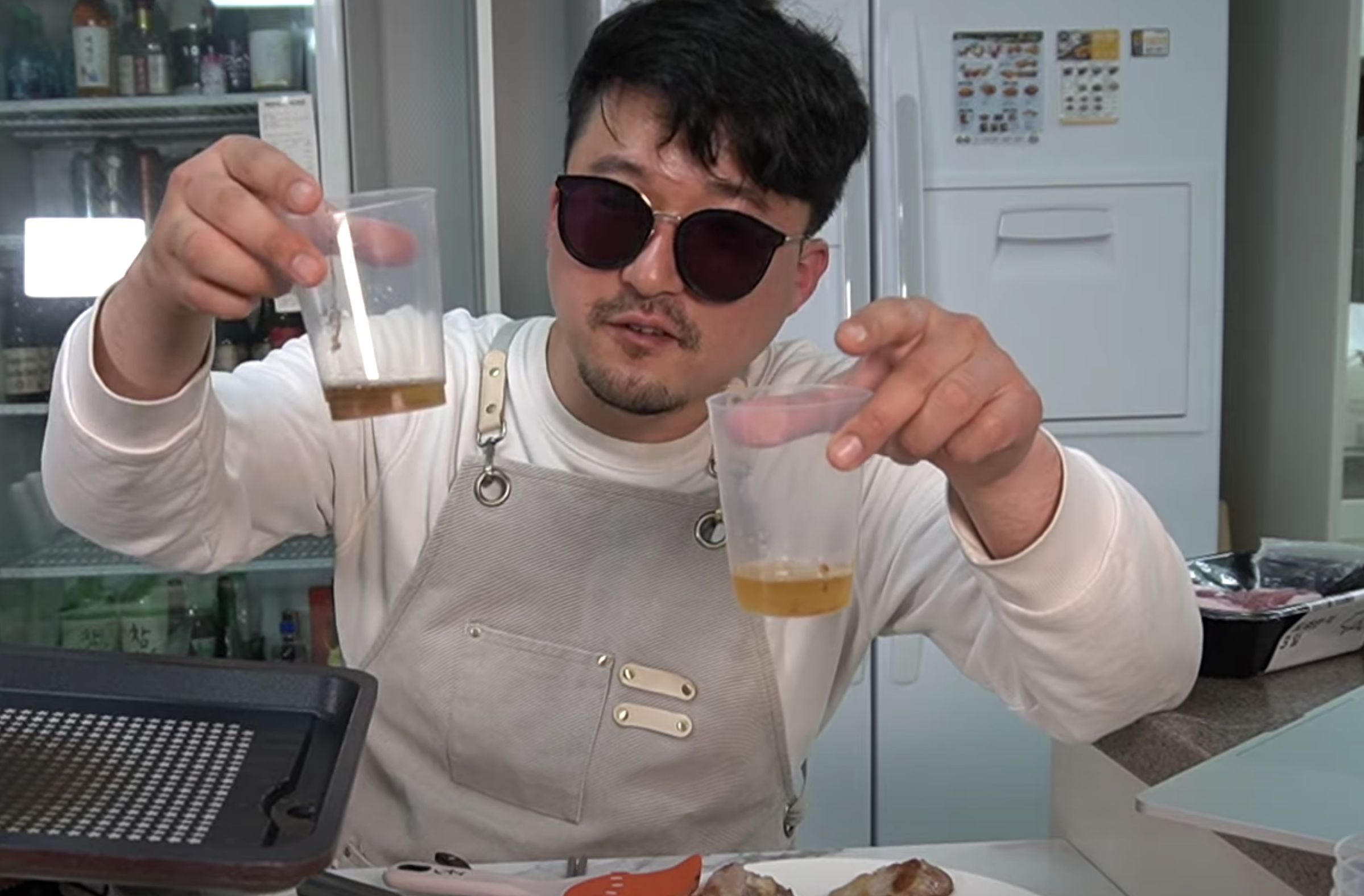 또 해당 유튜버는 직접 실험을 통해 일반 삼겹살과 초신선 삼겹살의 기름 색깔을 비교했다.
