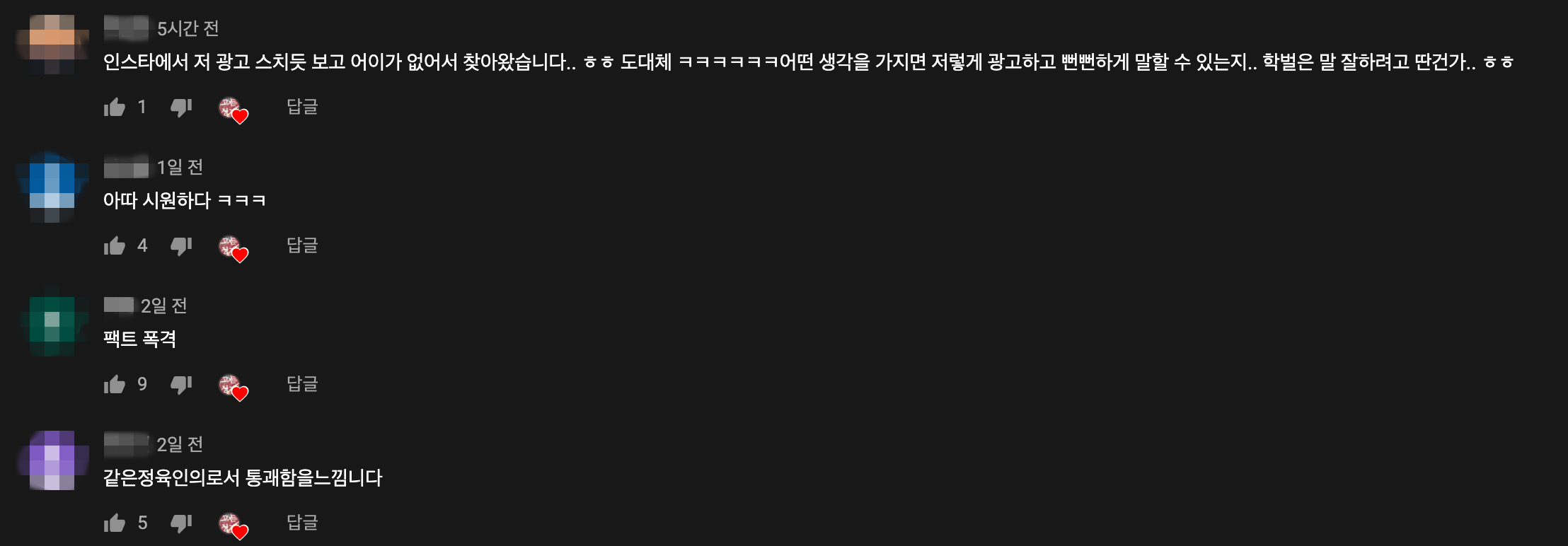 이를 본 네티즌들은 “저도 인스타에서 저 광고 스치듯 보고 어이 없어서 찾아왔습니다”, “아따 시원하다”, “팩트 폭격”등의 반응들을 보였다.