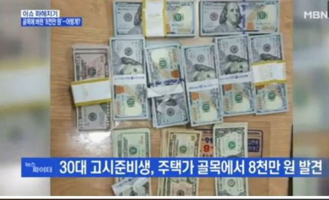 오후 6시 경 40대는 약 7만 2천 달러의 돈뭉치를 주택가 골목에 버렸고 이를 오후 7시 30분경 30대 고시 준비생이 발견한 것이다.