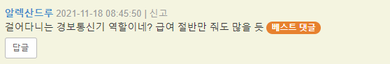 이를 접한 누리꾼들은 “반면에 남경이 범죄자 검거하면 당연한 일이고 여자가 한명 검거하면 뉴스에 대문짝하게 나오잖어? 바로 진급하고 ㅋㅋ” “옷벗어주고 진급하는 여경이 남녀차별을 운운한다고?” “여경을 말고 ‘경찰’을 뽑자” 등의 반응을 보였다.