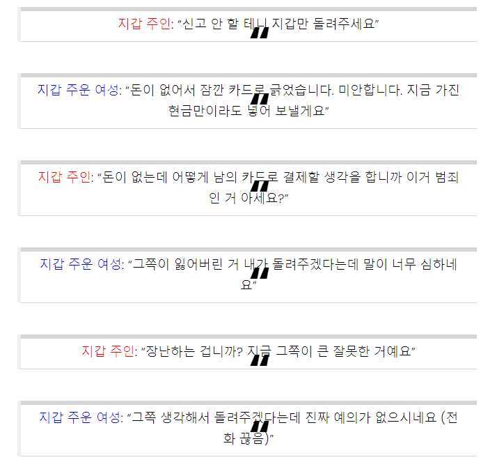 이에 글쓴이는 “지갑 받으면 바로 절도죄로 신고 넣으러 갈 것이다”라며 글을 마무리 지었다.