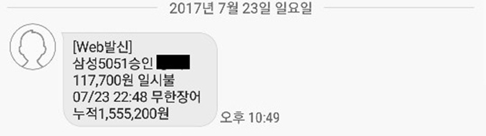 11만 원이 넘는 결제 내역 문자였다.