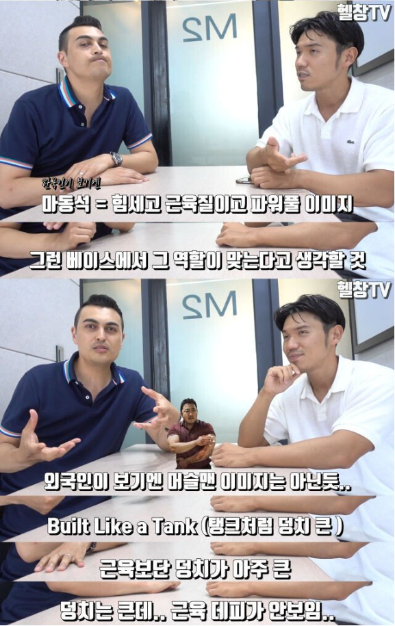 심지어 마동석의 현재 이미지는 ‘닥터 스트레인지’의 ‘술사’ 느낌이라며, “외국인의 입장에서 보면 동일 인물로도 보인다”고 말했다.