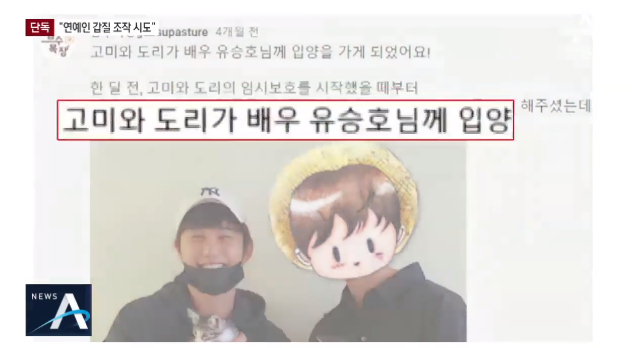 유승호의 소속사는 채널A와의 통화에서 “유승호가 입양 당시 촬영물 노출을 허락하지 않았지만 ‘갑수목장’이 일방적으로 사용했다”라고 밝혔다.