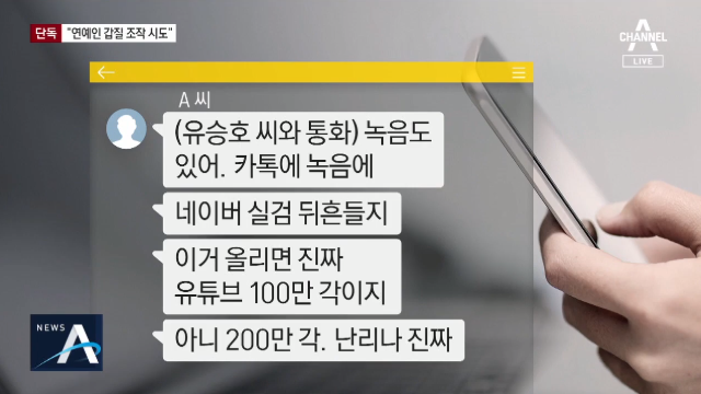 A씨는 “유승호와의 대화녹음까지 올리면 포털사이트 실시간 검색어에 오를 수 있다. 유튜브 100, 200만 구독자도 가능하다”라고 말한다.
